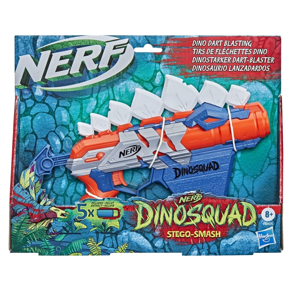 The Nerf Stego-smash toy, Dinosquad is a toy capable of bringing action and adventure into children's lives. This toy includes a Nerf gun with different dinosaur-themed designs and features.