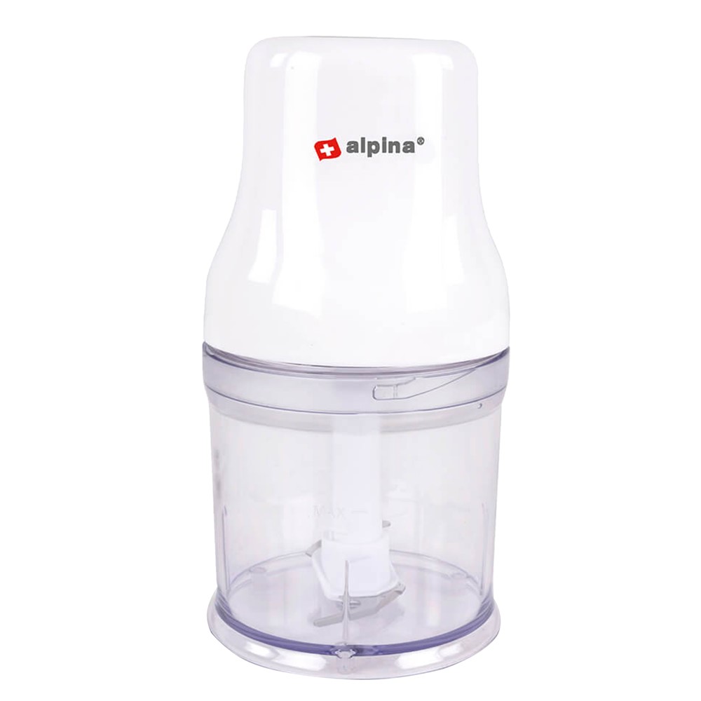 Chop the onions without watering the eyes. The 200W ALPINA shredder is perfect for cutting onions without watering the eyes. You can also mix vegetables or garlic and chili with this shredder. The shredder has 1 speed with efficient stainless steel blades and has a capacity of 0.36 liters.