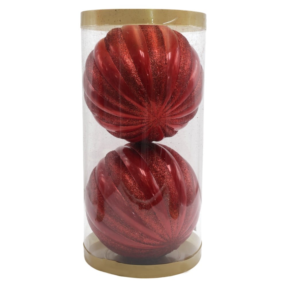 Christmas baubles (pk 2), plastic, red & glitter, 20 cm