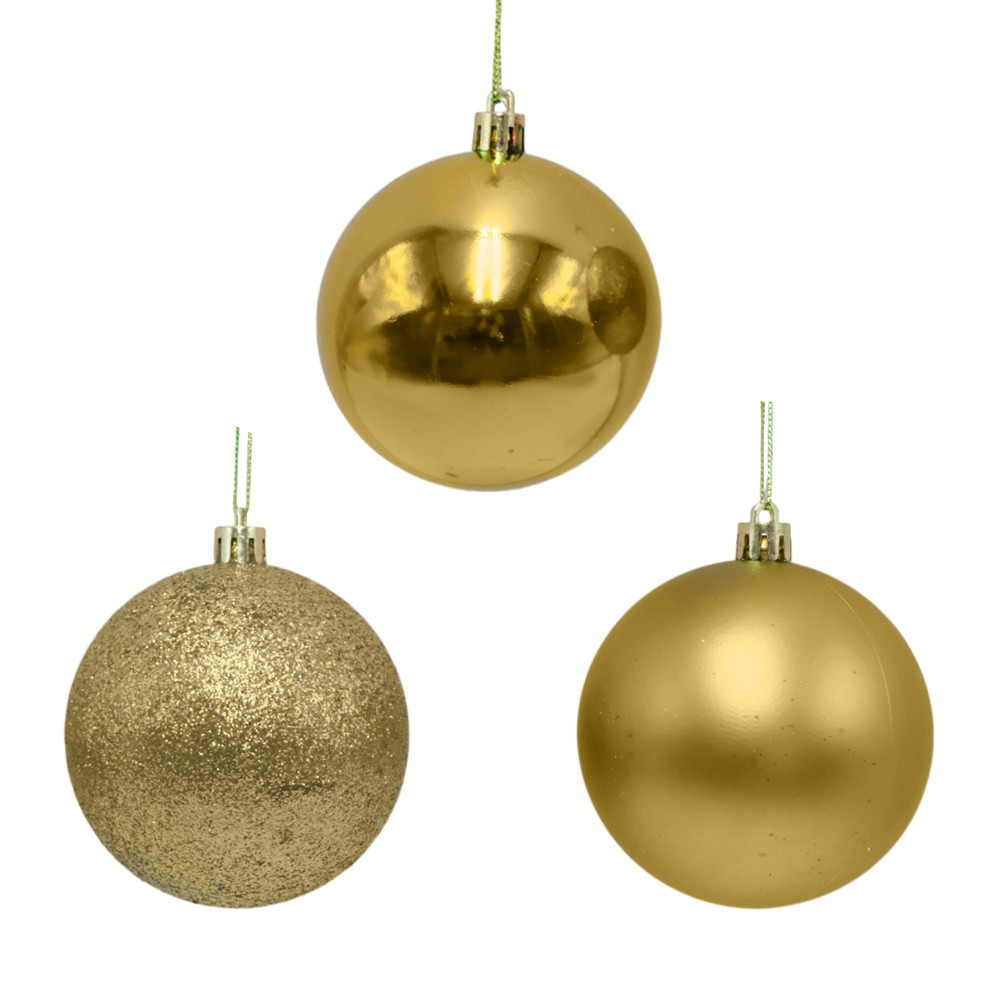 You're reviewing:Christmas baubless (pk 3), plastic, gold, 3 models, 6 cm