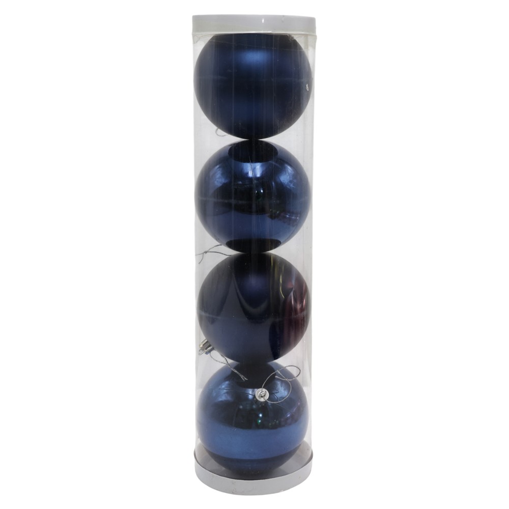 Christmas baubless (pk 4), plastic, blue, 2 models, 10 cm