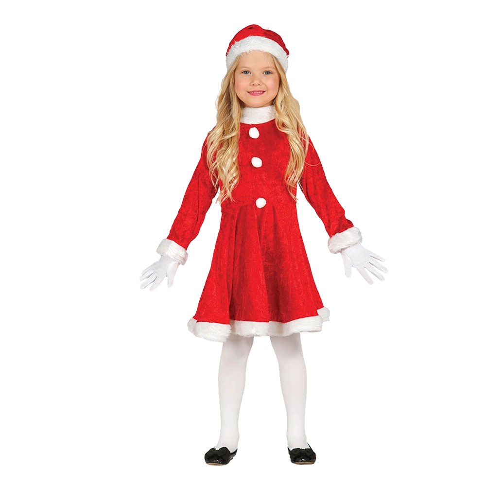 Santaclaus costume for girls made of polyester, red and white, for age 7-9. The magic of the end-of-year holidays will be closer to your children with these Christmas-themed dresses decorating your festive environments.