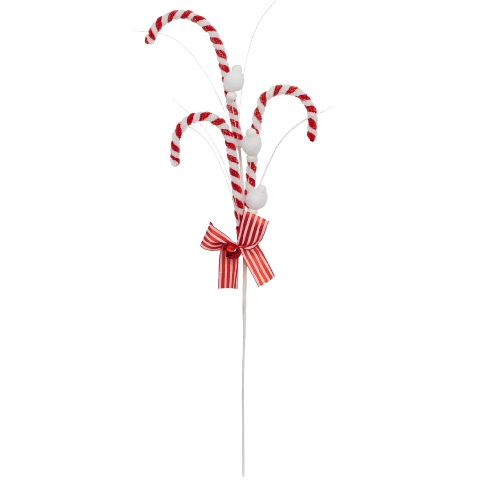 Christmas decorative branch, sugar cane, white and red color, H85 cm