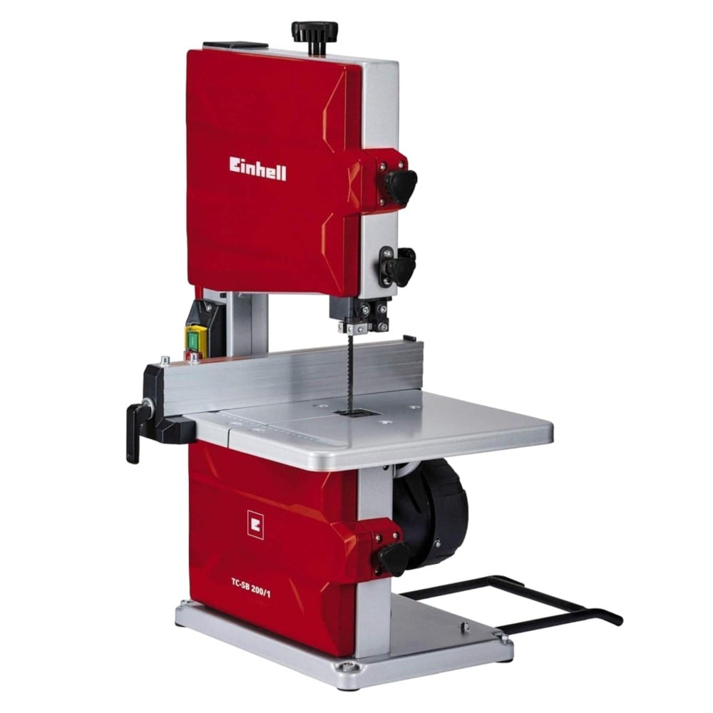 The Einhell TC-SB 200/1 bandsaw is an ideal basic machine for the ambitious hobby DIY enthusiast. Stationary but flexible at the same time, this bandsaw is highly adaptable when it comes to meeting set requirements. Straight cuts or curves, miter cuts or across the grain: a bandsaw offers a wide range of options. Depending on the blade used, it effortlessly cuts wood, plastic and similar materials thanks to its powerful 250 W motor. A bandsaw also offers the advantage of a narrow kerf, which goes easy on the material and saves energy. Used correctly the TC-SB 200/1 offers effective safety. The height adjuster is not just for performing precise cuts. Adjusted to the ideal working height of the user, the height adjuster also ensures that the user can work safely and comfortably. The multi-positional adjustable saw blade stabilizer reduces blade vibration to provide reliable performance and a finer cut at the same time. In addition the saw blade guard is height-adjustable and can therefore be adjusted to the thickness of the material being cut. The supplied push stick is indispensable for working in safety on the bandsaw. The saw table is infinitely tiltable, so it even handles tricky miter cuts. The parallel stop and the ball-bearing guide are a big help to the hobby DIY enthusiast when performing straight and precise cuts.