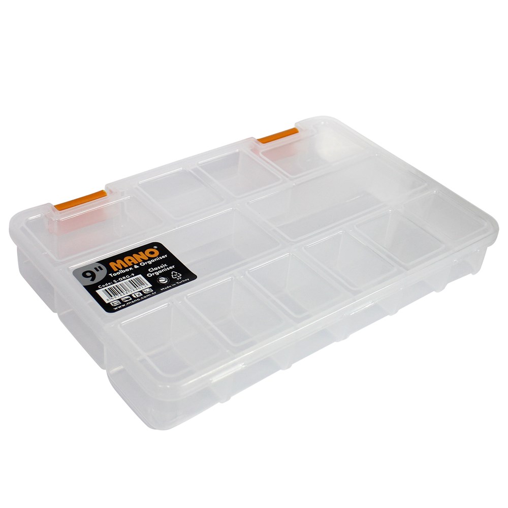This 12-Compartment Transparent Small Parts Storage Organizer features deep, adjustable compartments that are great for organizing small parts and tools.It is easy to carry with you. This plastic storage case has 2 locking tabs , so parts stay in place.