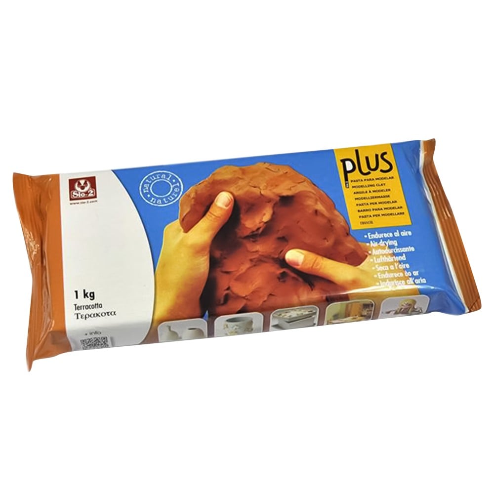 modeling clay, which hardens in the air. It does not require cooking, is not dirty and can be easily shaped with your hands. It allows you to create objects of various shapes and sizes. The hardening process can be accelerated by placing the created objects near radiators or other heat sources. PLUS modeling clay can be colored with any type of paint, markers, acrylic, tempera, oil and cold ceramic colours.