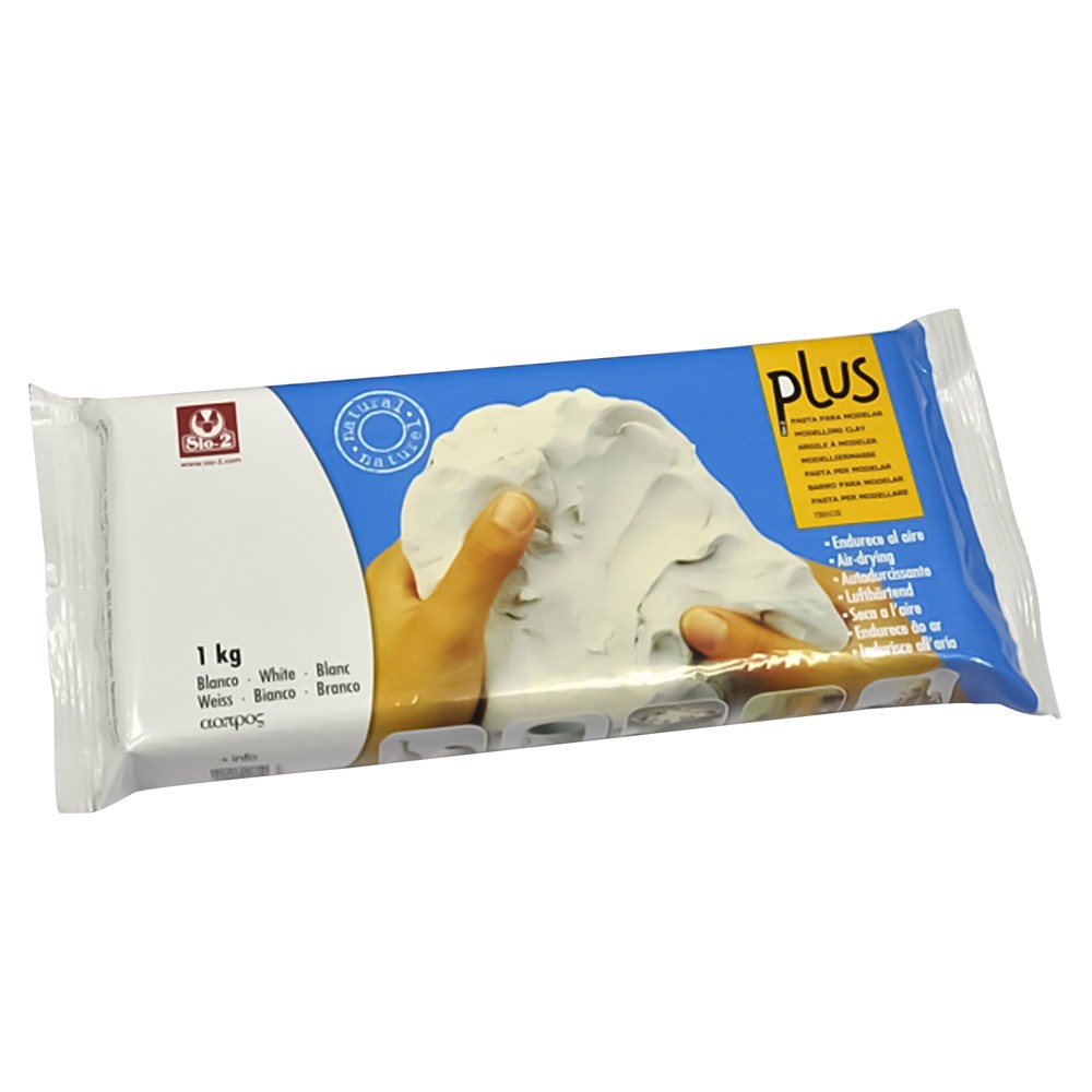 modeling clay, which hardens in the air. It does not require cooking, is not dirty and can be easily shaped with your hands. It allows you to create objects of various shapes and sizes. The hardening process can be accelerated by placing the created objects near radiators or other heat sources. PLUS modeling clay can be colored with any type of paint, markers, acrylic, tempera, oil and cold ceramic colours.