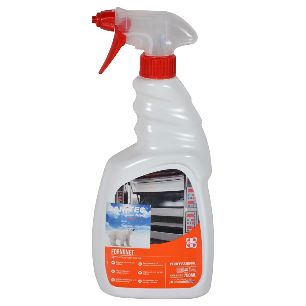 Cleaning detergent, "Sanitec", removes grease from stove, 750 ml, white, 1 piece