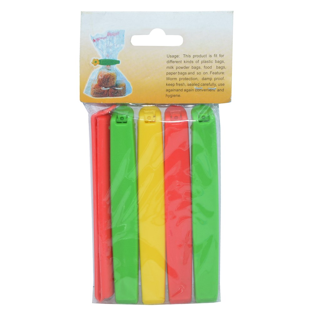 Plastic clip for closing food bags. Suitable for different types of packaging bags, this clip with its beautiful shape and design will help keep your food warm and fresh at all times.