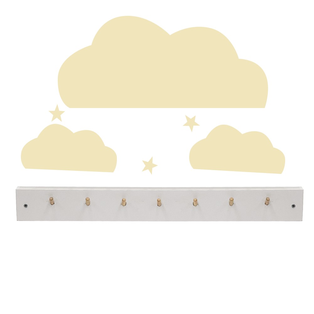 The "Cloudy" clothes hanger is a great solution for organizing clothes in a convenient and attractive way. With a wooden design and white color, it goes well with most home decorations. The shapes of clouds and stars are stickers that stick to the wall, while the rafters are made of wooden material.
