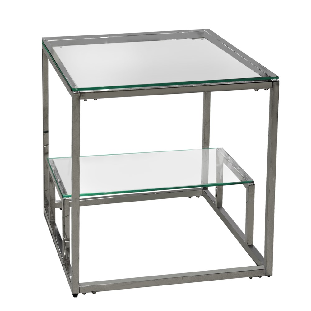 Coffee table, stainless steel structure (silver), glass top tempered glass 8 mm, clear, 60x60xH55 cm