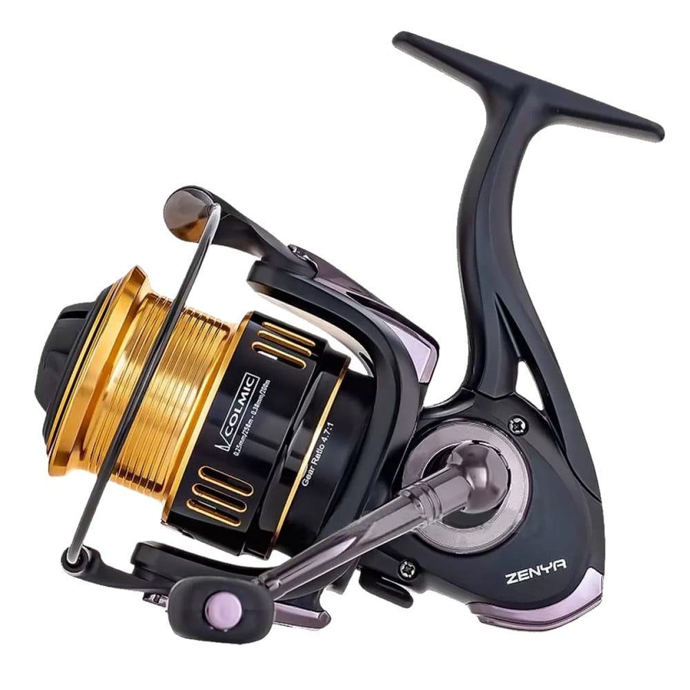 The ZENYA series is proposed in four different sizes. It is a COLMIC novelty which aims at satisfying any fishing needs - from the BOLOGNESE to the FEEDER, the ENGLISH style and the light and heavy BIG GAME. Its MAXI SPOOL facilitates the slipping out of the line for greater casting distances. The special shape of its handle allows for the knob to be placed closer to the reel body, thus facilitating retrieval. The BALL BEARINGS are 5, +1 for antireverse. The particular design of the rotor gives this eclectic reel a captivating appearance - not to mention its competitive price.