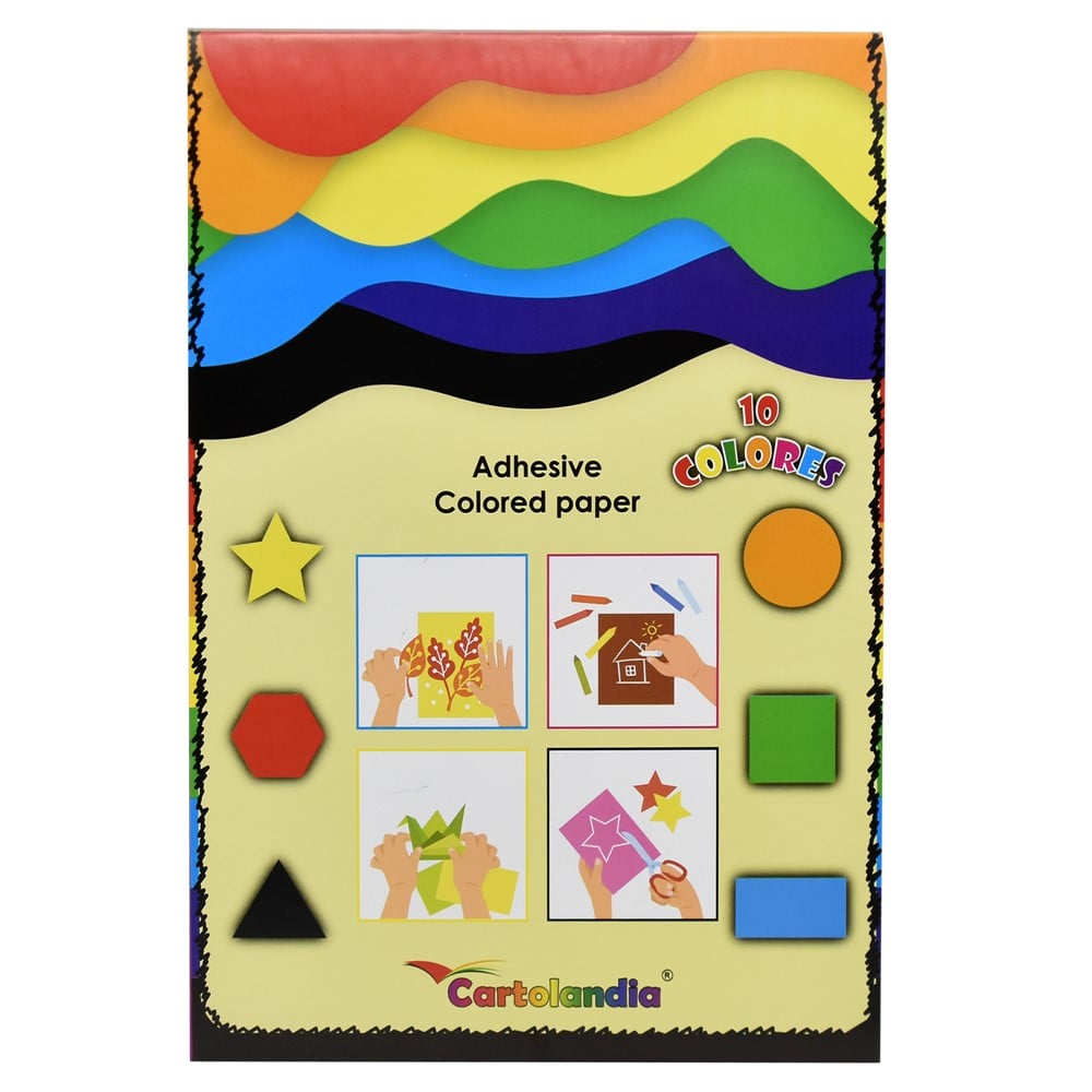 Colored paper sheets for kids, which include 10 colored adhesive paper sheets, in A4 paper size, in assorted colors. The colored paper can be used by children in home environments or in schools, to create various artistic works. This product is suitable for use by children over 5 years old.