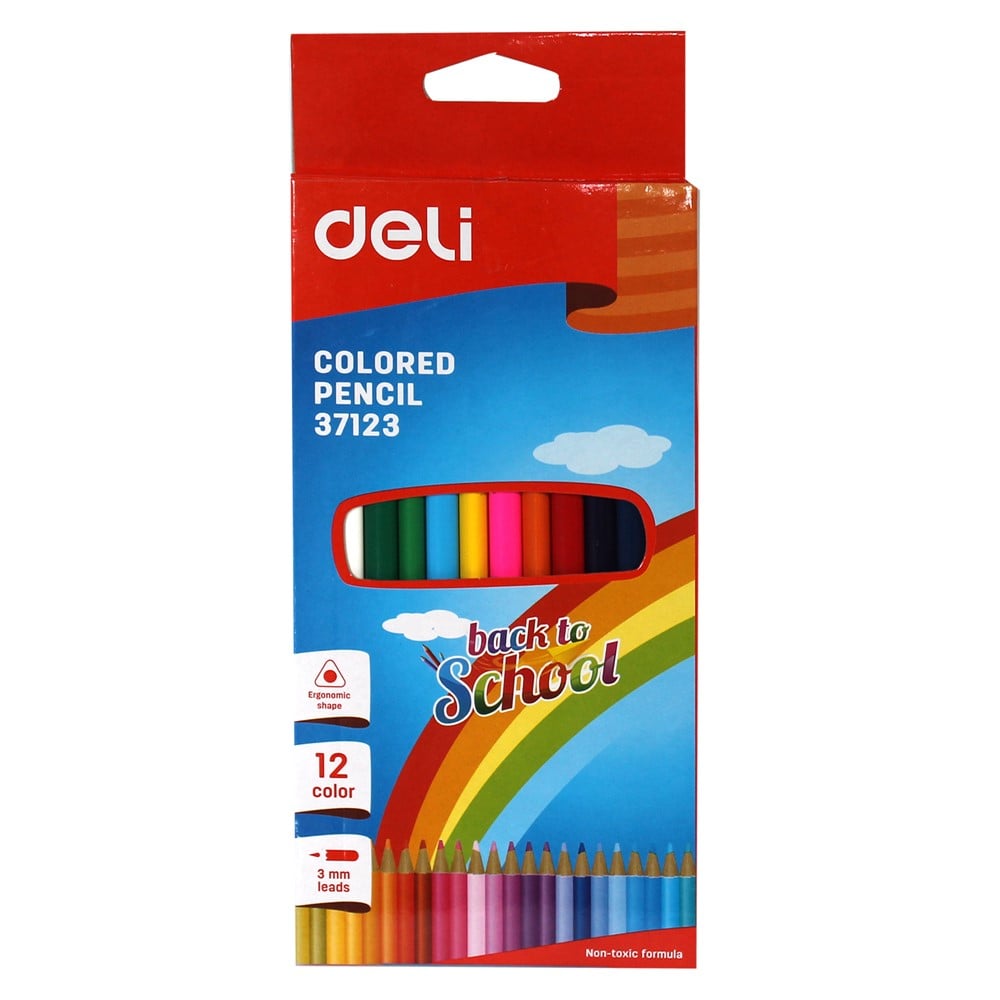 Colored pencils for children, which are made of durable wooden material, without toxic content, in 12 different colors, equipped with a reinforced tip, that resists the pressure exerted by children's hands during coloring, and with a triangular-shaped structure, that gives them ergonomic properties and makes them easy to use. The pencils are used for coloring, drawing or other artistic works, in schools and kindergartens. This product is suitable for use by children over 3 years old.