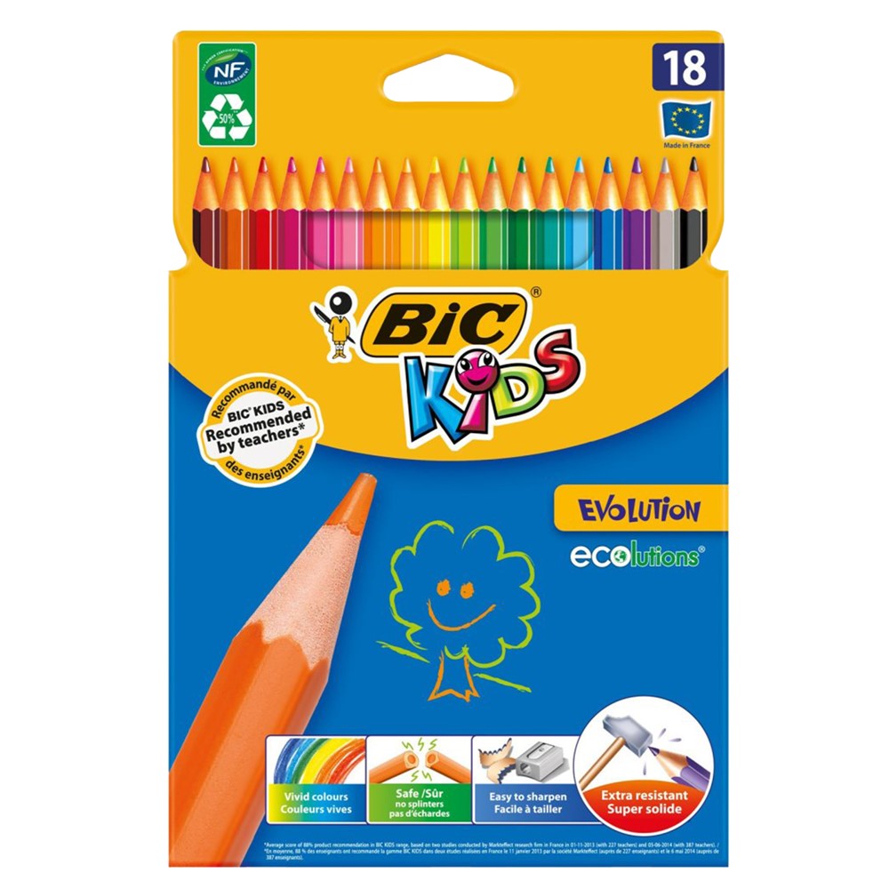 Colored pencils for kids, Ecolutions, Evolution, Kids, Bic, synthetic resin, 21.3x14.7x1 cm, miscellaneous, 18 pieces