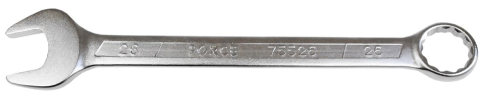 Combination Wrench 26mm is made of chrome vanadium steel for durability. The finish is excellent for resistance to corrosion. This wrench features a 12-point style on the closed end. This wrench is easy to clean and includes large size markings that are simple to read.