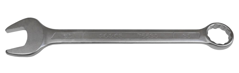 Combination Wrench 30mm is made of chrome vanadium steel for durability. The finish is excellent for resistance to corrosion. This wrench features a 12-point style on the closed end. This wrench is easy to clean and includes large size markings that are simple to read.