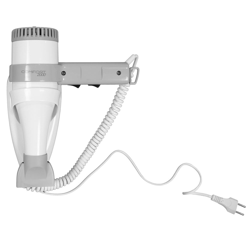 COMFORT 2000 was born from our wish to offer our Customers a wide range of sturdy, reliable, safe and easy to use Hair and Hand-Dryers. It is precisely with these intentions that our product lines are developed. They are entirely manufactured with top quality components, which, together with our experience and specialisation, allow us to meet our targets while ensuring competitive prices.Wall mounted hair dryer- Long life motor- On / Off security switch- Slide switch:-2 speeds-3 temperatures- Supplied with alimentation cable