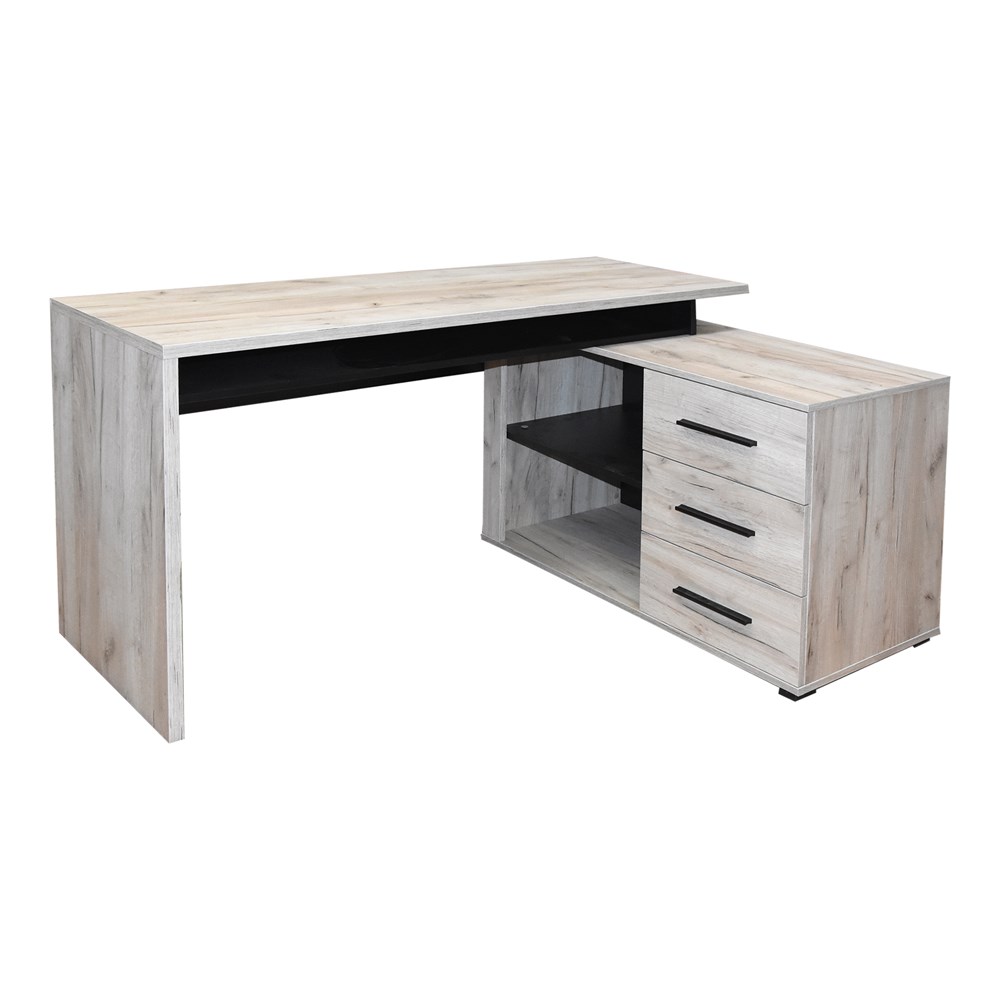 Computer desk ARHIMED, in grey oak pattern, presents a basic detail for perfectly functional working space where everything should reflect order and harmonious organization. The practical composition of desktop, drawer system and the closed wing section provides sufficient space for storing and sorting all important items and documents.
