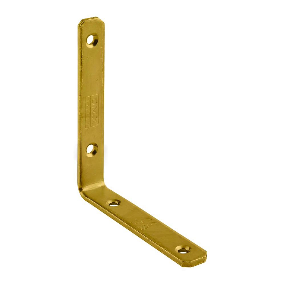 Angled wood connector, made of galvanized zinc material, measuring 125x125x20x4 mm, in gold color, equipped with an external coating of zinc powder, which protects it against corrosion and rust. It is used to enable the best possible connection of wooden elements to each other or wooden elements to walls and floors. This product is suitable for use in both standard systems and for individually designed connectors.