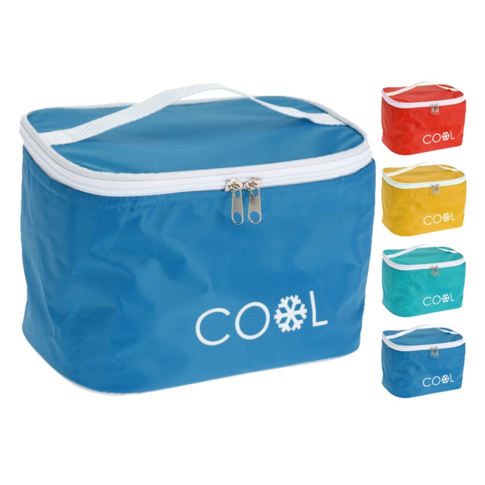 Thermal bag, made of polyester material, with aluminum lining, with a carrying capacity of 4 l, in different colors. The bag is equipped with a carry top handle for an easier holding during use and with a large compartment with double zipper closure. It can be used to store various foods and beverages at a cool temperature. This product is suitable for use in camping, picnics, beach, outdoor trips, hiking, etc.