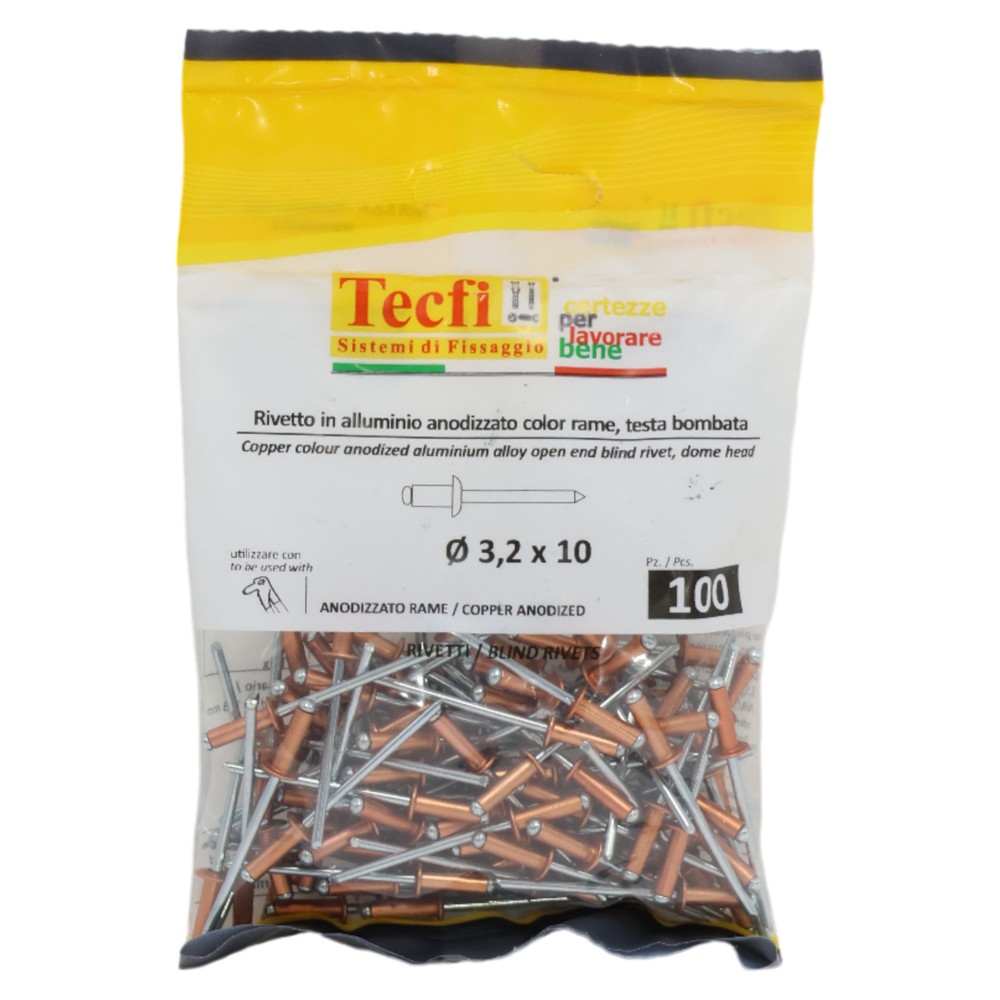 You're reviewing:Copper anodized dome blind rivet,al/zp steel, Ø 3,2x10mm, Bag 100