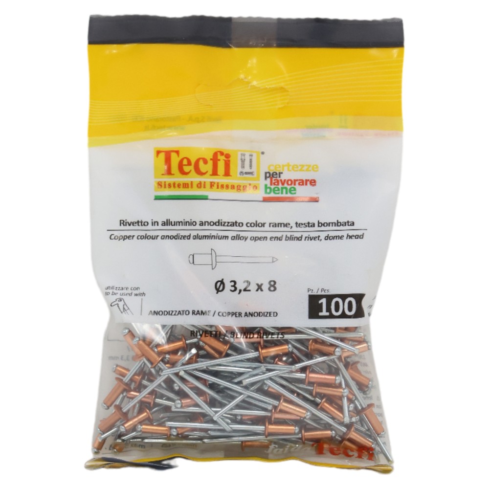 You're reviewing:Copper anodized dome blind rivet,al/zp steel, Ø 3,2x8mm, Bag 100