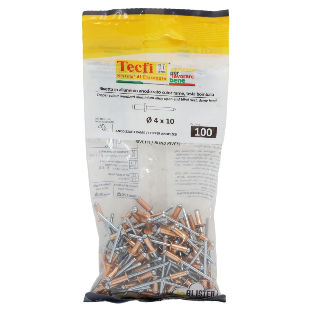 Copper anodized dome blind rivet,al/zp steel, Ø 4x10mm, Bag 100
