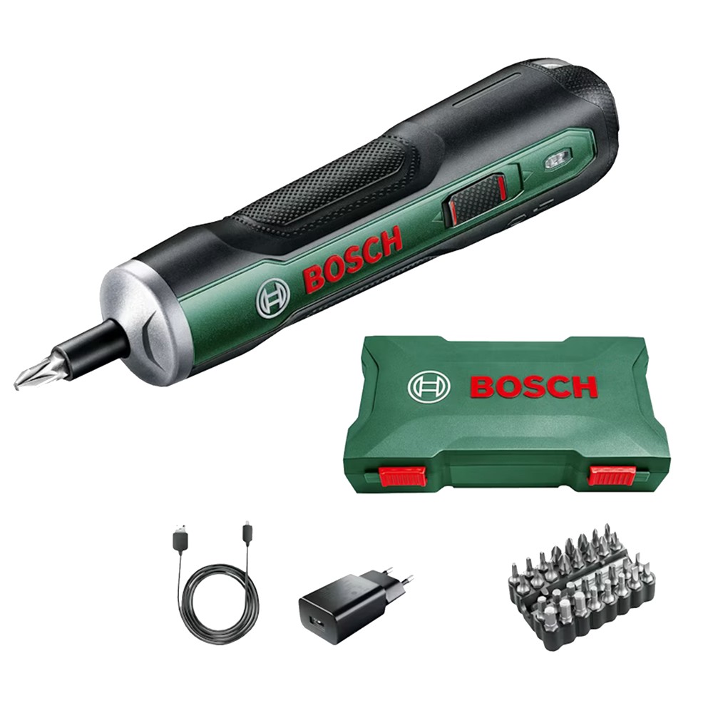The screwdriver from Bosch offers convenient handling for the jobs done at home, without the need to press a key during the screwing work, simply by connecting the device to the workpiece with the screw, exerting light pressure on the battery of the screwdriver that works and is already working hard. The PushDrive is used when a compact screwdriver is needed for large projects. Only slightly larger than a classic hand screwdriver, it fits easily in your pocket and is therefore always at hand. Provides additional control is provided by the PushDrive device via the central position of the switch for adjusting the direction of rotation. If the key is placed in the center, the socket of the bit is blocked, so that the PushDrive device can be used as a classic manual screwdriver. Thanks to the proven lithium-ion technology, it is always ready for use - without self-discharge effect or battery memory. The practical micro USB charger enables short charging times and flexible connection options. For example, the PushDrive device can be charged simply via the smartphone cable.