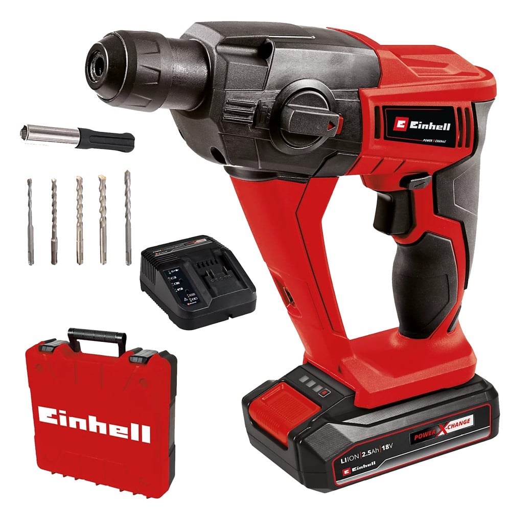 You're reviewing:Cordless SDS plus hammer drill, Einhell, TE-HD 18 Li (1x2.5 Ah), 18 V, 0-1100 rpm (battery included)