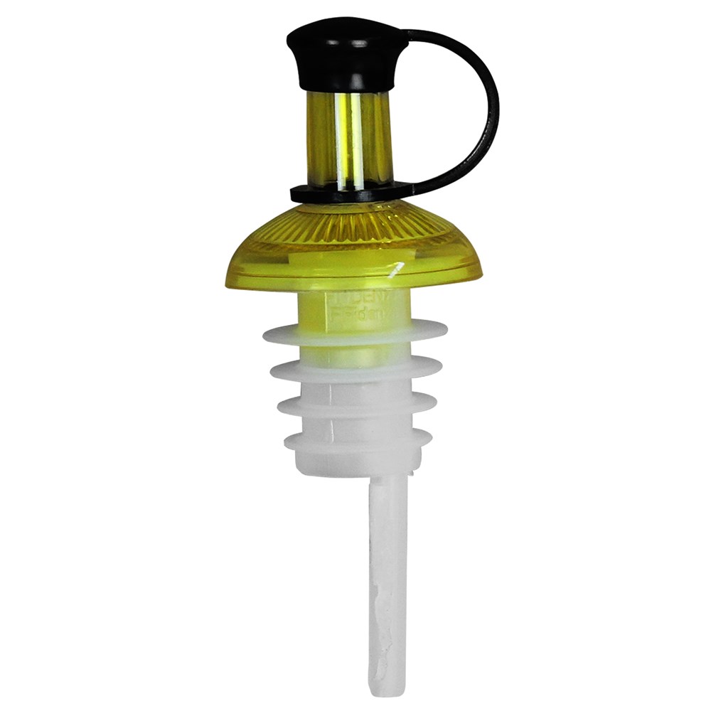 Cup with effluent throat to be places on oil bottles. It helps the use of oil in the tabble and kitchen. Base with rubber material