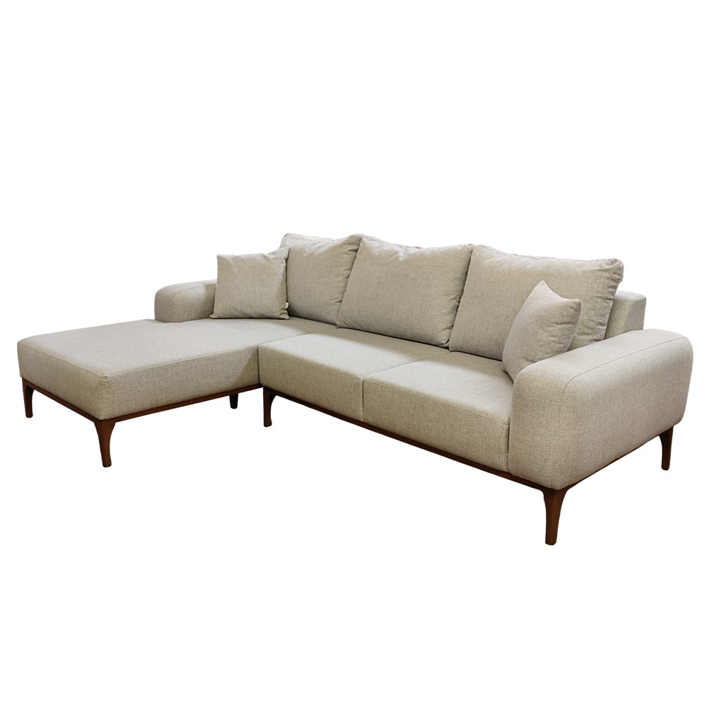 The corner sofa is an elegant choice for those looking for a suitable piece of furniture for their living spaces, offering not only a beautiful look, but also comfort and functionality. Left-handed model, which means that the corner of the sofa is located on the right side when facing. Contains a beige textile upholstery. This color can contribute to the creation of a sophisticated and calm atmosphere, it can easily adapt to the home decor