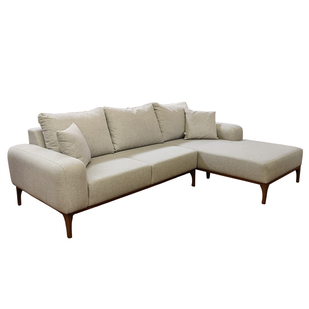 The corner sofa is an elegant choice for those looking for a suitable piece of furniture for their living spaces, offering not only a beautiful look, but also comfort and functionality. Right-handed model, which means that the corner of the sofa is located on the right side when facing. Contains a beige textile upholstery. This color can contribute to the creation of a sophisticated and calm atmosphere, it can easily adapt to the home decor