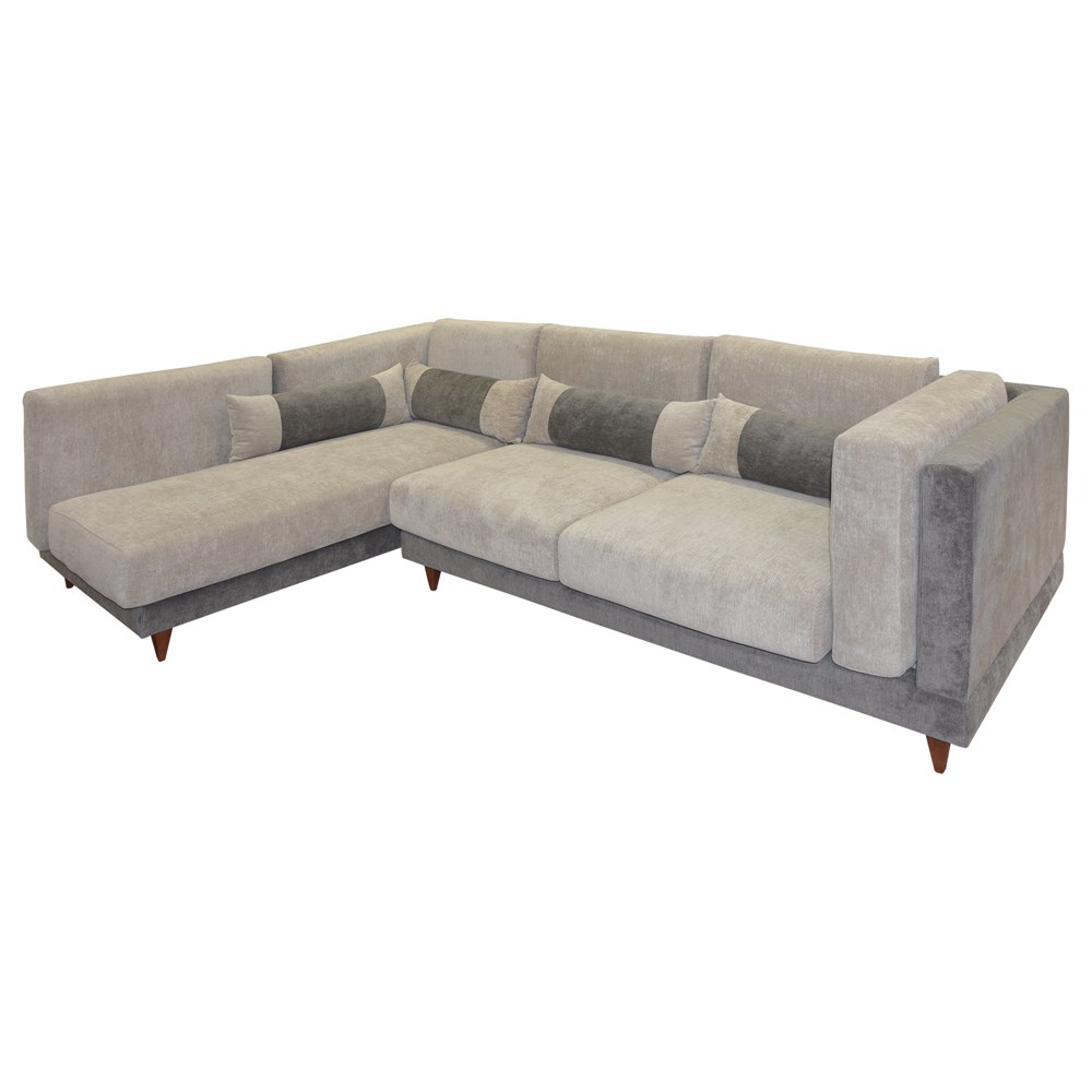 Corner sofa, left, wooden frame, textile upholstery, beige, 185x97xH70 cm