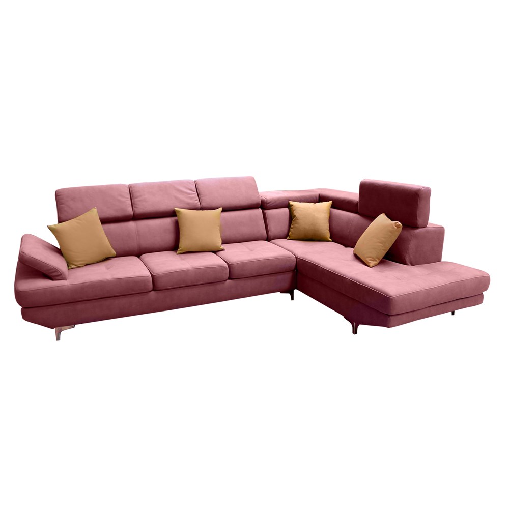 You're reviewing:Corner sofa, right, wooden structure, metal legs, textile upholstery, purple, 300x200xH85-100 cm