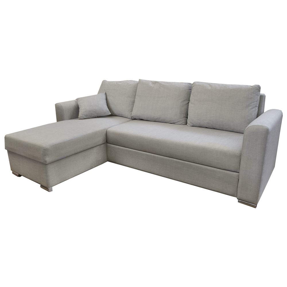 You're reviewing:Corner sofa, Silver, metal frame, storage unit, textile upholstery, cushion included, grey, 245x160xH95 cm, bed: 140x210 cm