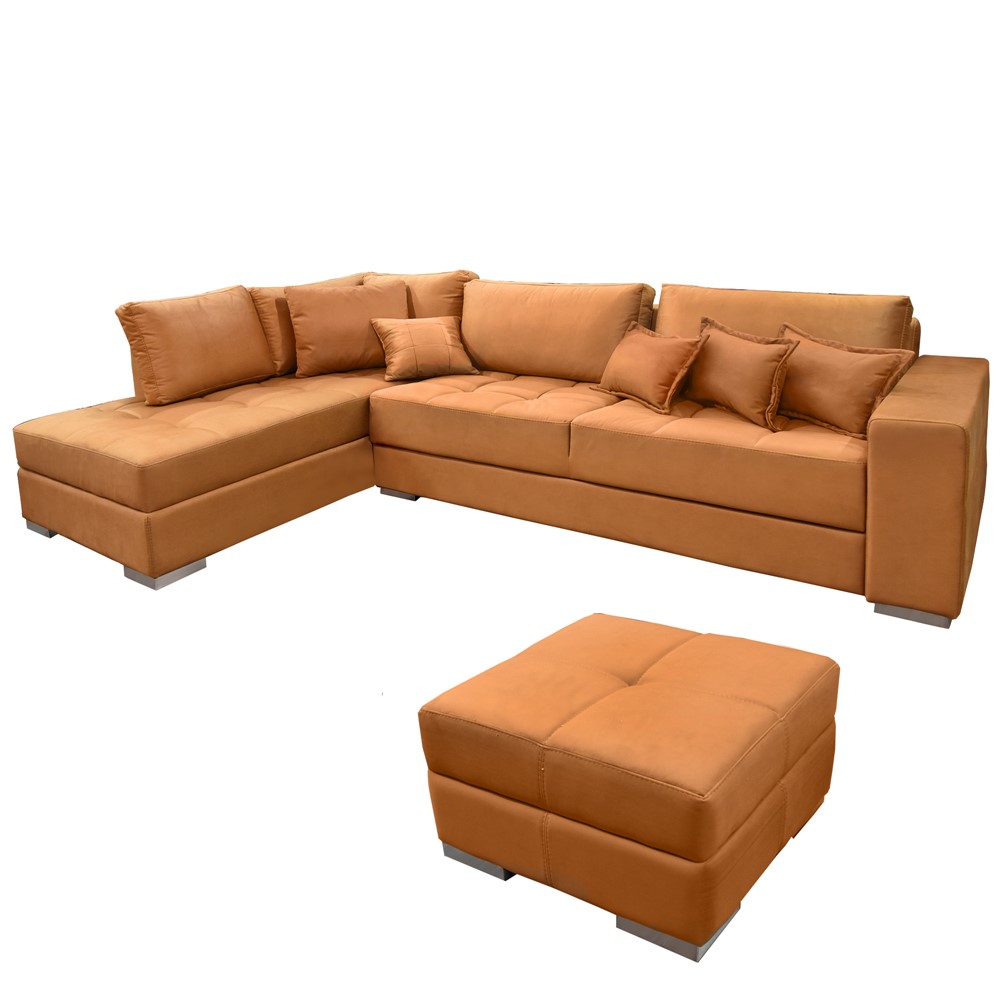 You're reviewing:Corner sofa with stool, left, DEA, wooden frame, textile upholstery, brown, Corner sofa: 290x190xH70 cm; Pupa: 68x68xH40 cm