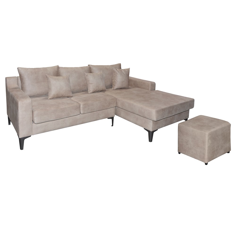 Corner sofa with stool, right, VIENA, wooden frame, textile upholstery, beige, Corner sofa: 240x170xH78 cm; Pupa: 50x50xH42 cm