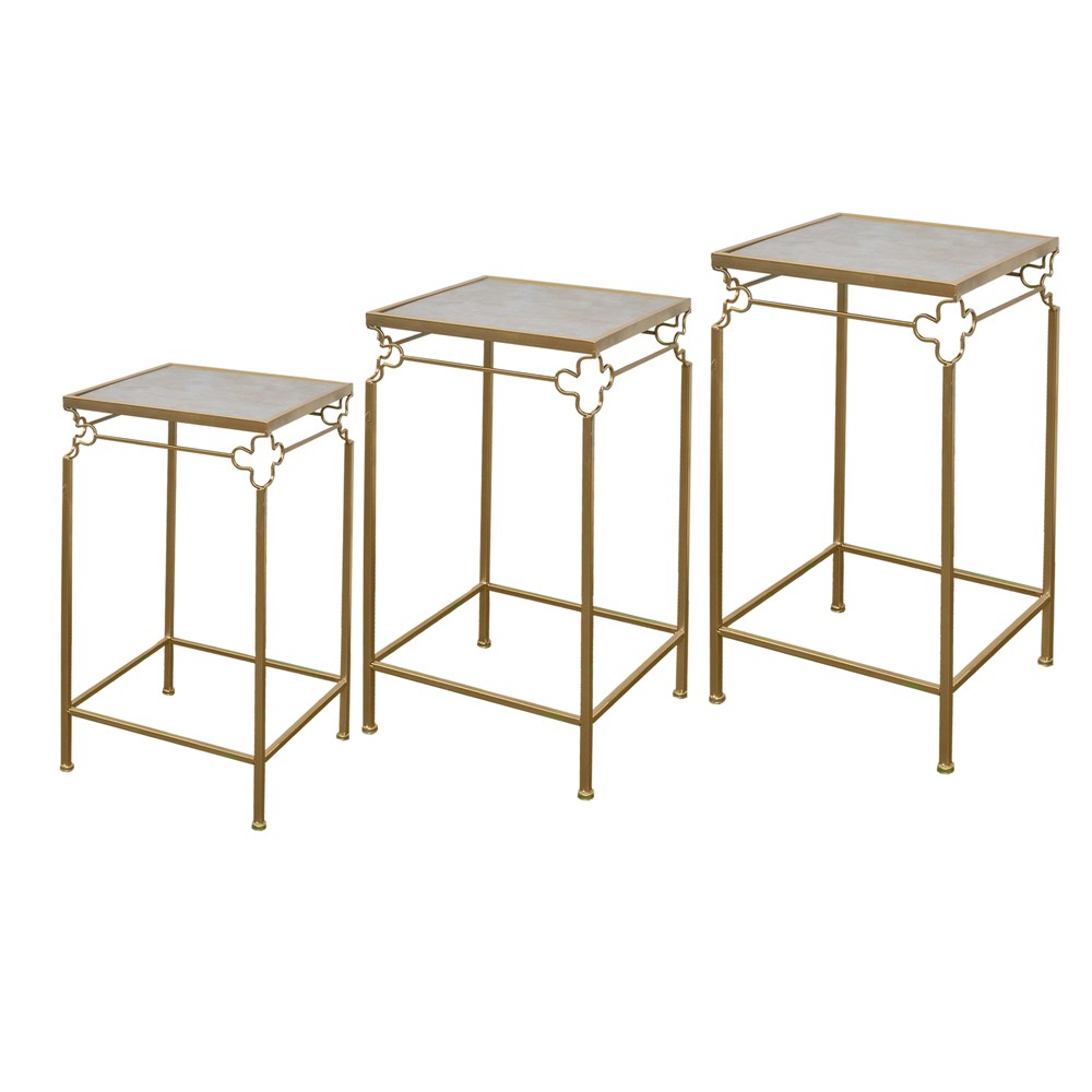 Corner table set of 3 pieces, metallic, golden, 1-30.5x30.5xH60.5 cm; 1-35.5x35.5xH65 cm; 1-40x40xH70 cm