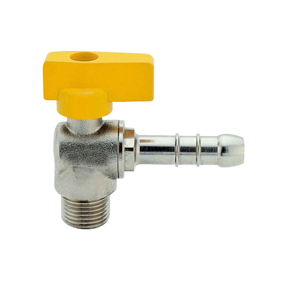 The angular gate valve with sphere and yellow aluminum handle is used for opening and closing the gas (LPG). With its two 1/2-M'' outlets and the other tap outlet for connecting the rubber tube, it is a necessary and very practical product for the operation of gas systems.