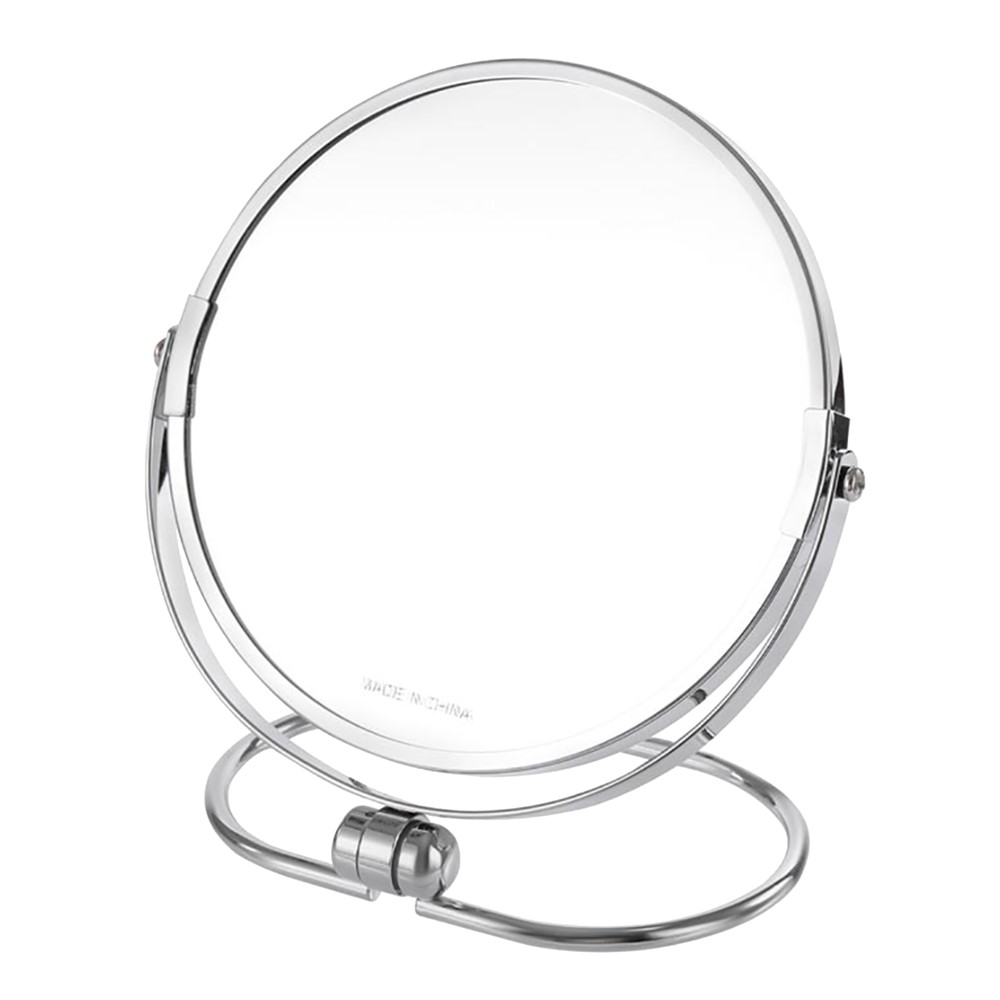 Cosmetic mirror, in a round shape, with a supporting structure made of durable iron material, with a diameter of 18 cm, in silver color. The mirror has two sides and is rotatable up to 360 °, allowing for a better view of the face during use. It can be used when applying makeup or other skin care products, for better results. The metal structure can be adjusted to the desired angle and it is suitable to be placed on the surfaces of tables or bedside tables, in bedrooms or bathrooms.