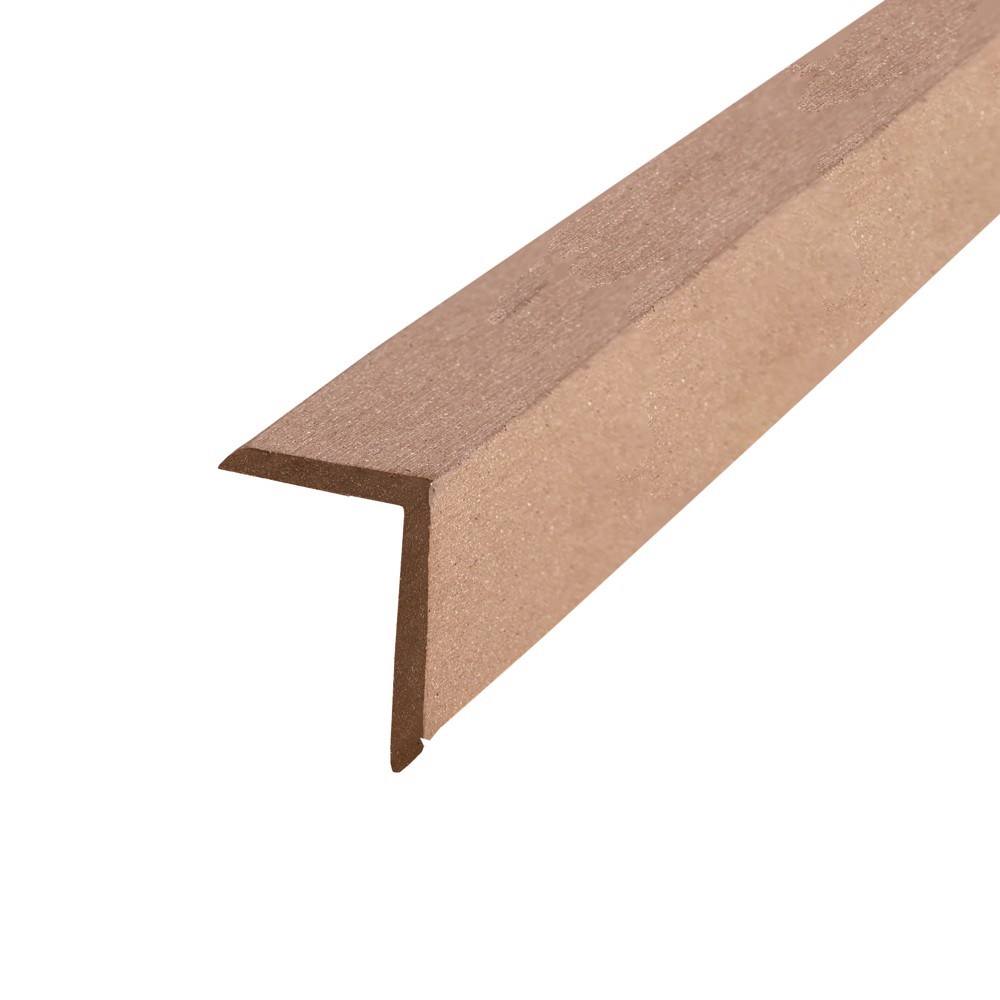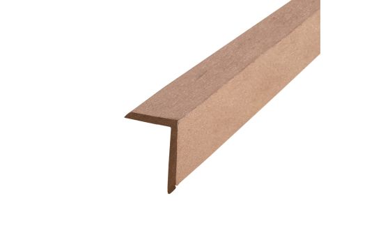 Cover profile decking WPC wood effect, chesnut color. Measurements: 2200 x 40 x 60 mm (length x width x height). Made of WPC composite wood, an eco-friendly material, composed of 100% FSC certified wood waste and 100% recycled high density polyethylene (PE). The FSC certificate ensures that the wood comes from sustainably and responsibly managed forests.