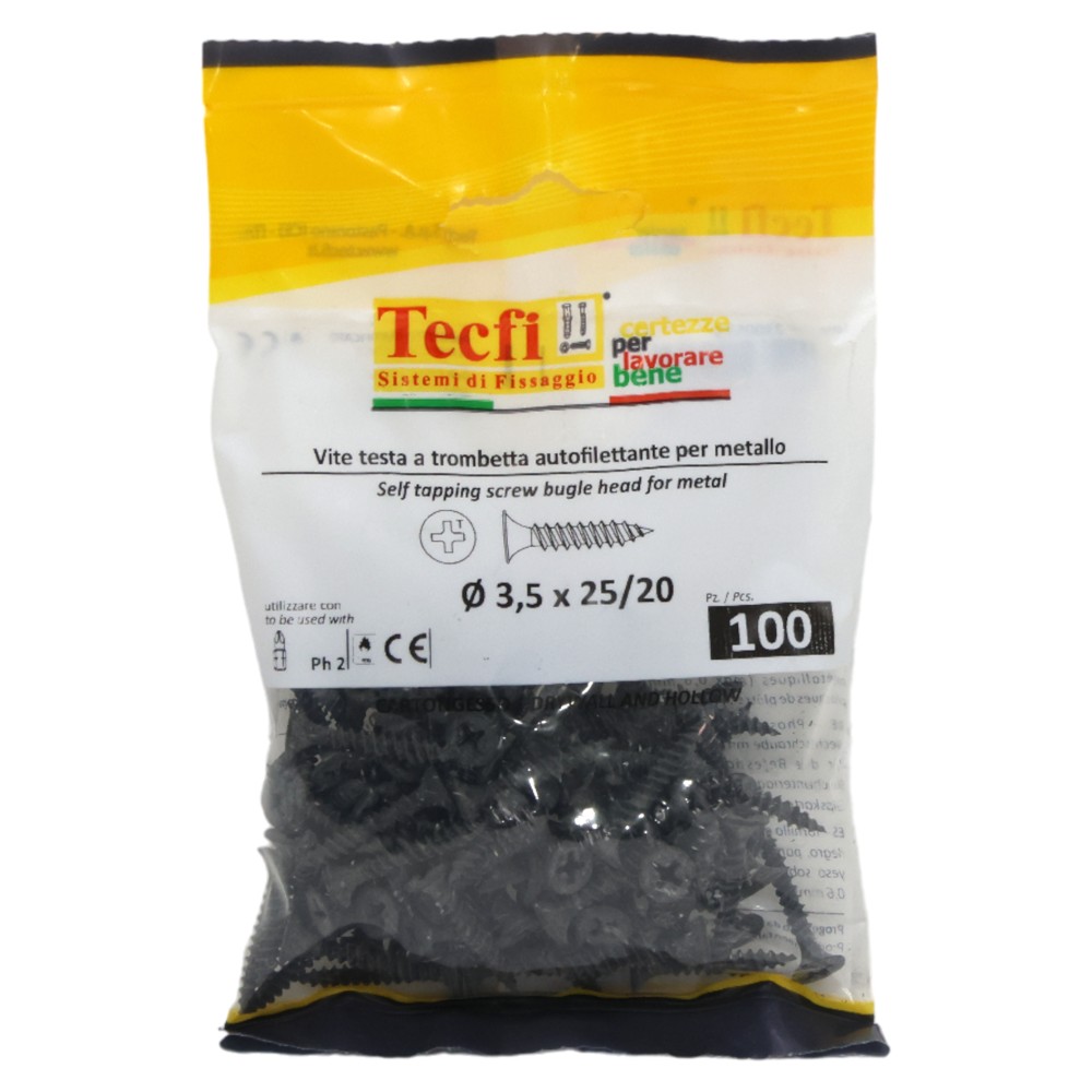 Cross type H bugle head twinfast screw black phosph., Ø 3,5x25mm, Bag 100