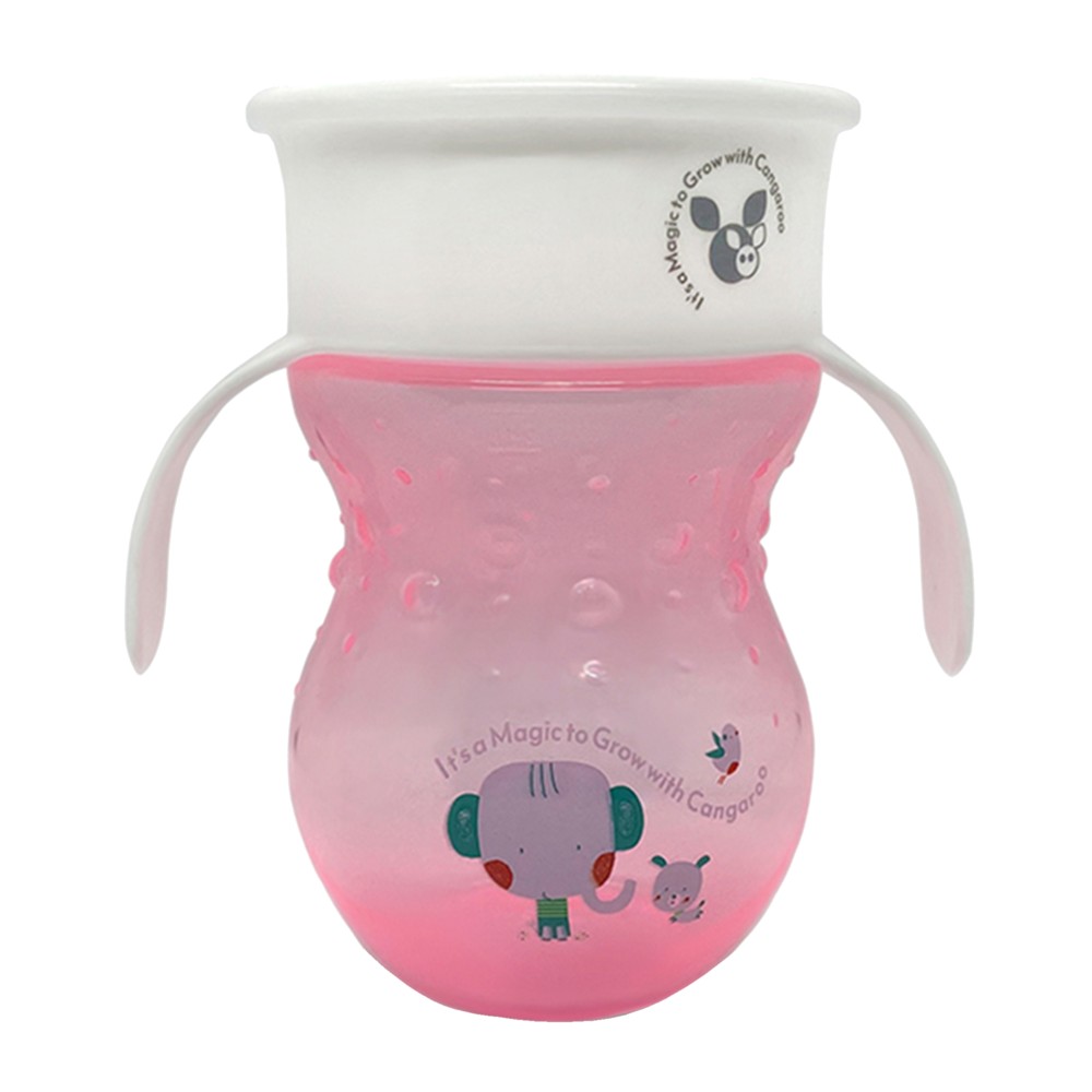Children's glass, pink, with a capacity of 270 ml. This magical educational glass for children helps them to consume water and fruit juices in their daily life, and not just milk. The cup is equipped with a 360° silicone base, which closes immediately after the child stops drinking, preventing leakage. Soft silicone also protects the teeth from possible damage. It has two handles for easier holding, and a plastic cover that protects the drinking area from dirt. It is recommended to be used by children over 6 months.