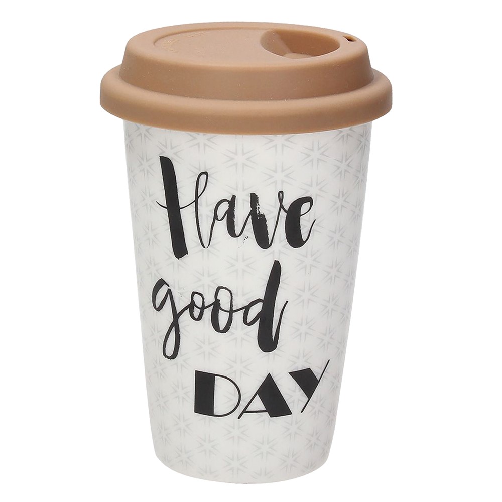Cup with lid Olympia Sand, ceramic / silicone, white, 390 cc