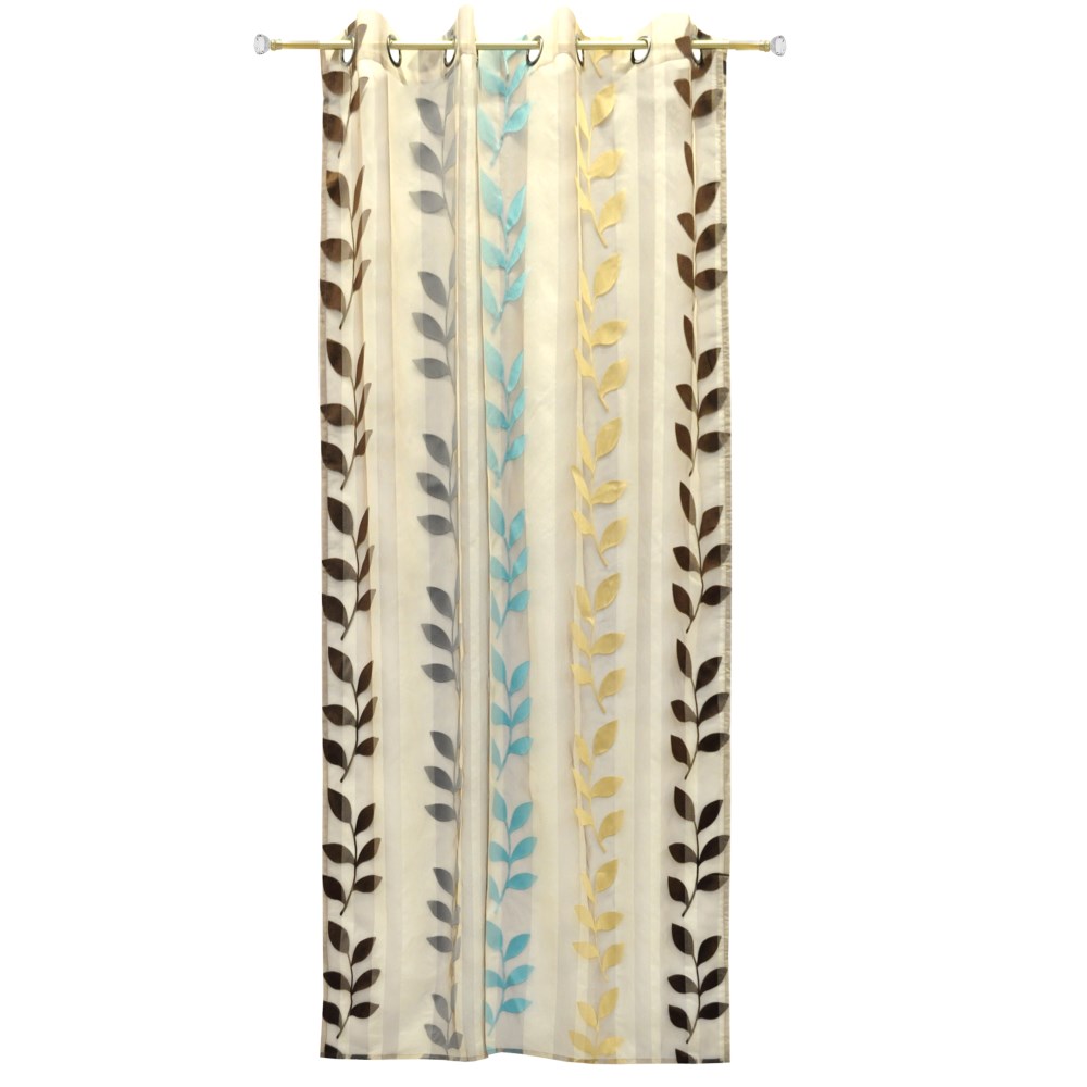 Curtain is the main decorative, functional, protective accessory which integrates the outer space separating intimacy and internal environments. Waves which create elegant view to the curtain fabric, combined with factors as color and transparency create pleasant environment, add style, extravagance and light-shade where is used. Gives to your space a new identity with the curtain with brown, cream, blue and floral elements, made from organza material, which gives to this product gently contoured sleek and graceful in your window. Easily combined with other elements of decor with blue, grey, black, brown, etc., that make this curtain rings, perfect for bedrooms and living areas, bringing harmony of colors and contemporary elegance to your environment.
