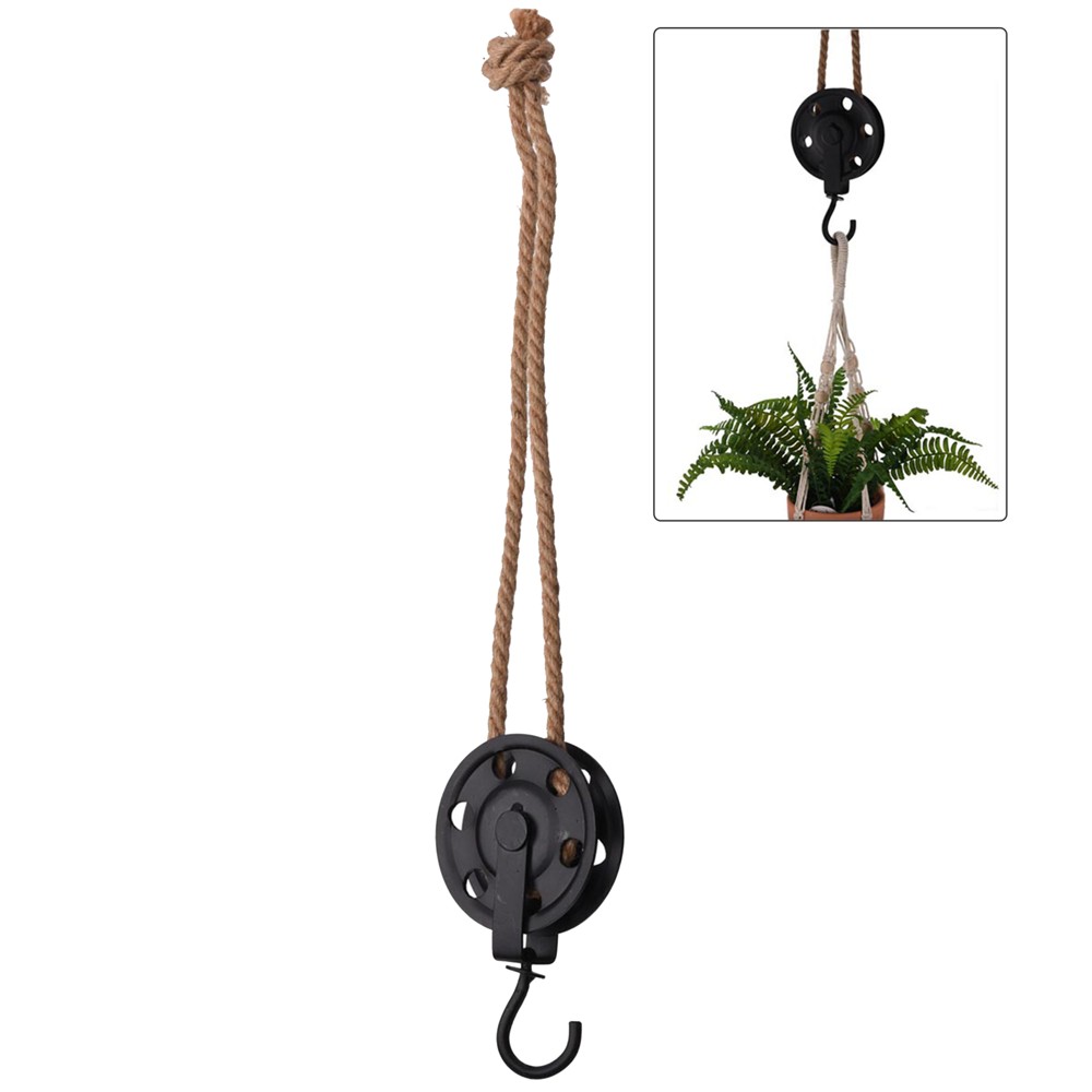 Decoration pulley, metal/rope, black/natural, 56 cm