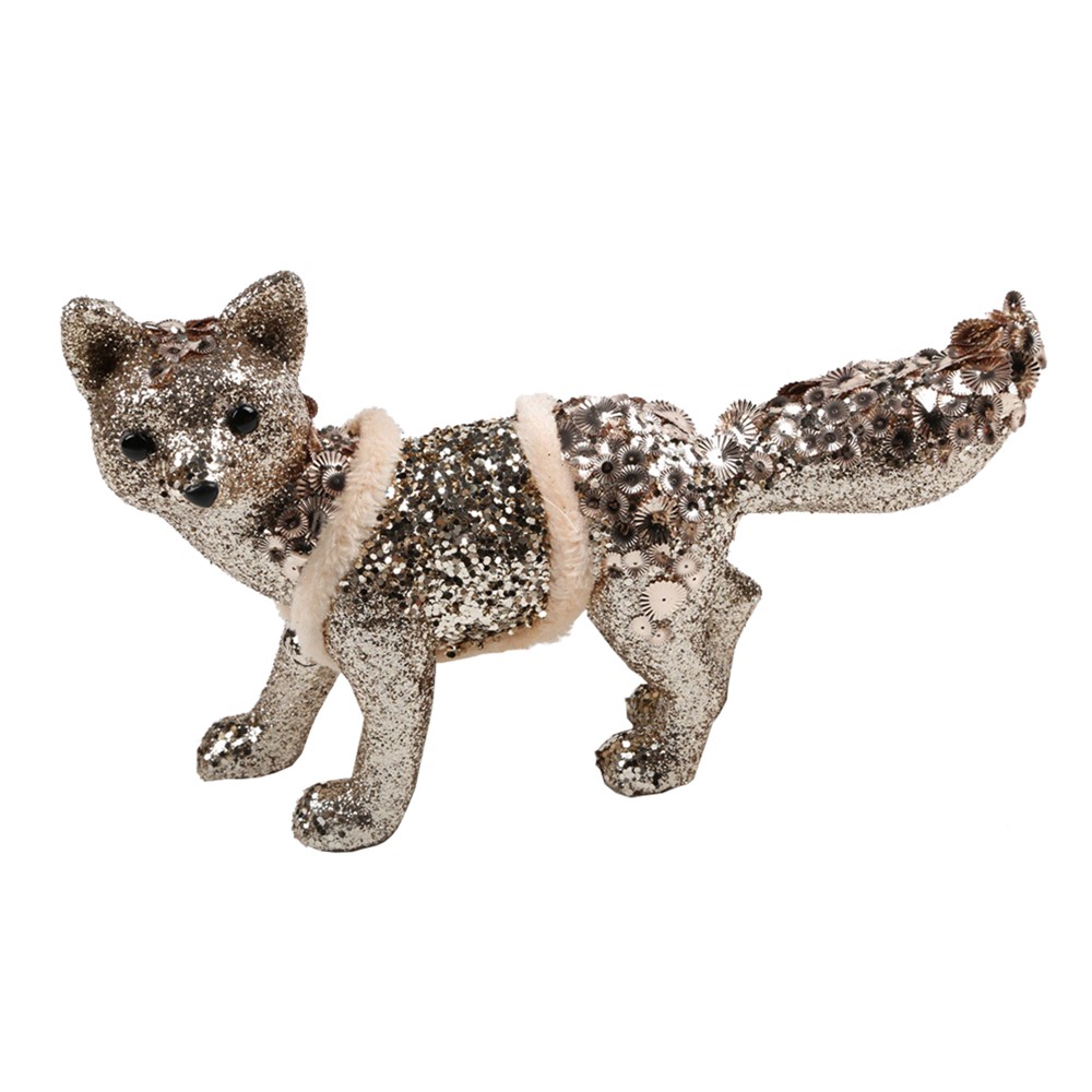 Decorative animal, Fox, silver/gold, 34x10xH20 cm