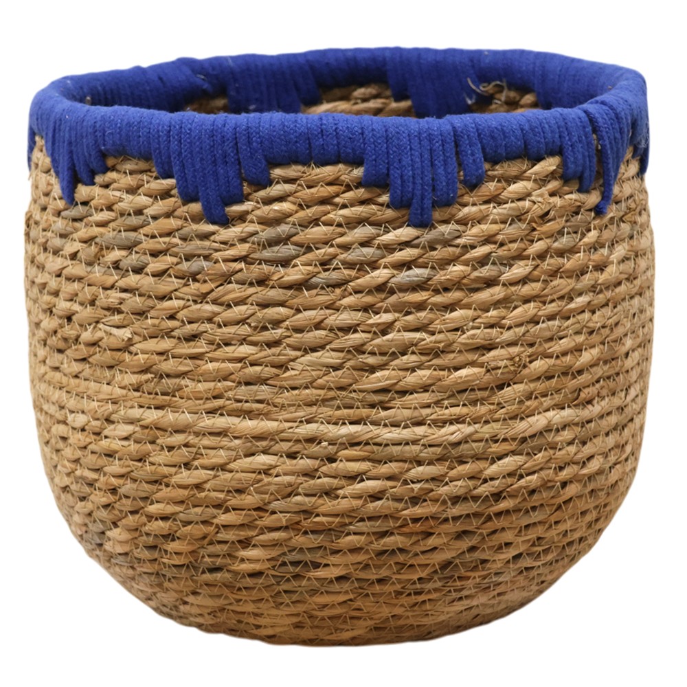 The "Jorck" decorative basket is as practical as it is stylish and modern. The blue and natural color adds a feeling of freshness and fits easily with all types of furnishings. The straw material is extremely durable as well as lightweight. Complete the set with 3 "Jorck" baskets in different sizes. Dimensions, Ø29xH24 cm.