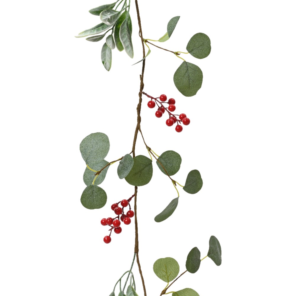 Decorative branches with Christmas motifs, Berry, green and red, L150 x W7 cm
